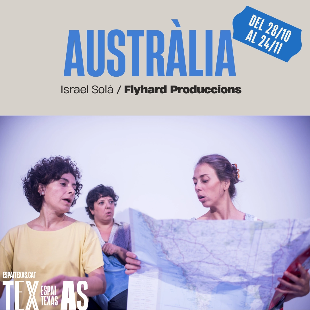Del 28 d'octubre al 24 de novembre la roadmovie teatral AUSTRÀLIA, d'Israel Solà, tancarà la gira de tardor amb 3 setmanes a l'Espai Texas. Una dramèdia sobre maternitat i família interpretada per Ester Cort, Meritxell Huertas, Carme Poll i Brian Lehane.