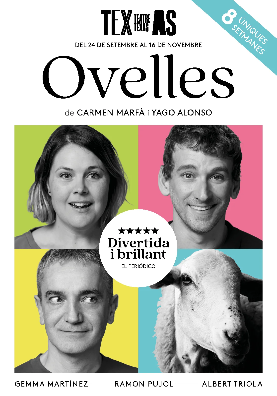 Torna Ovelles, l’aplaudidíssima comèdia escrita i dirigida per Carmen Marfà i Yago Alonso, amb un nou repartiment. A partir del 25 de setembre a l'Espai Texas.