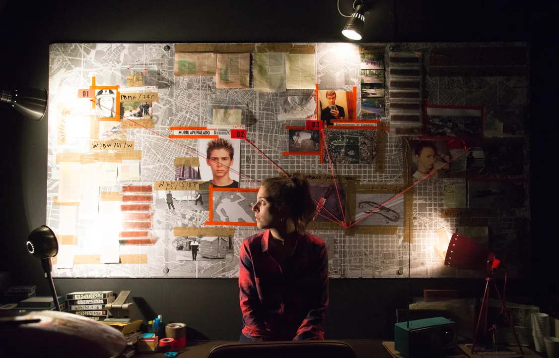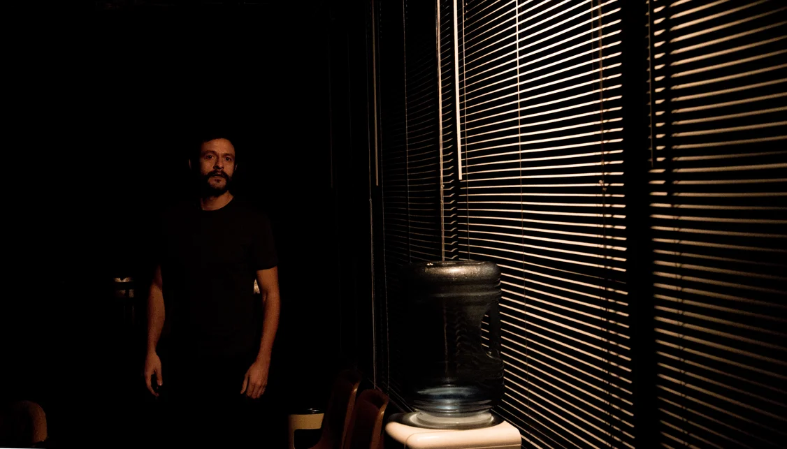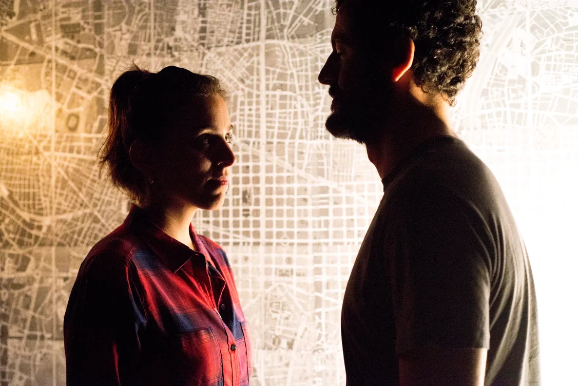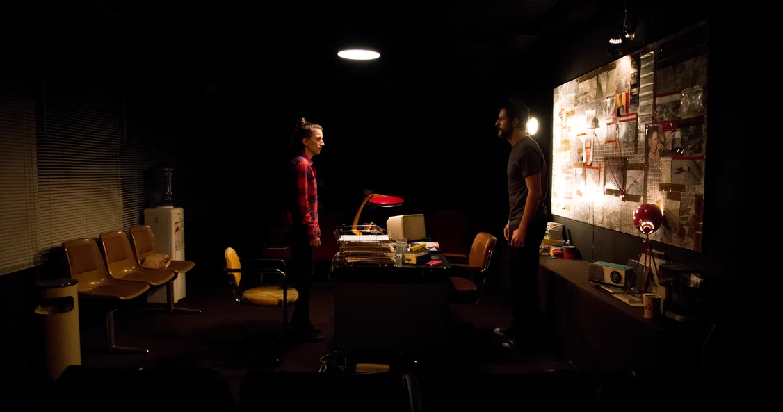 Nit de dissabte. Cau una tempesta sobre la ciutat. Una comissaria de barri. Dos personatges. Una noia de vint i pico i un noi de trenta i pico. Ell entra, ella ja hi és. Ell vol parlar, ella no el deixa. A ell li encanta la pluja, ella detesta la roba xopa. Ella preferiria estar sola, ell no vol marxar. Ell s’auto inculpa, ella no el creu.